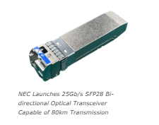 Täällä NEC: n 25G SFP28 80 km: n bidi -optinen lähetin -vastaanotin tulee sisään. Sen avulla voimme päivittää olemassa olevat 10 Gt/s -järjestelmät korkeampaan kapasiteettiin rakentamatta uutta infrastruktuuria.Koska se tukee kaksisuuntaista siirtoa yhdellä kuidulla, leikkaamme kuidun käyttöä puoleen ja vähentämme käyttöönotto- ja ylläpitokustannuksia.